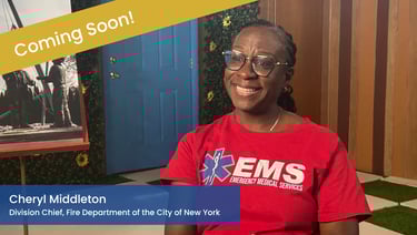 FDNY Division Chief Cheryl Middleton was born in NYC and raised in the Bronx. She has been an EMT for over 37 years and has made history as the second black woman to ascend to her current rank in the FDNY. On September 11, 2001 she served as a first responder at the World Trade Center.